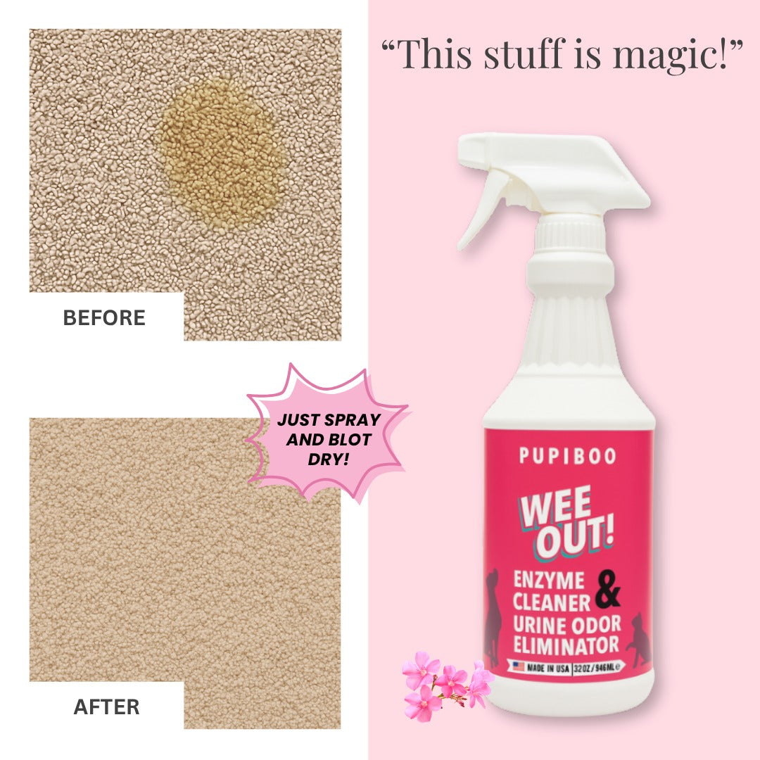 Wee Out Enzymatic Spray: Fast-acting spot cleaner for accidents, messes, and urine smells on floors, rugs, and upholstery. Safe for pets and effective on contact.