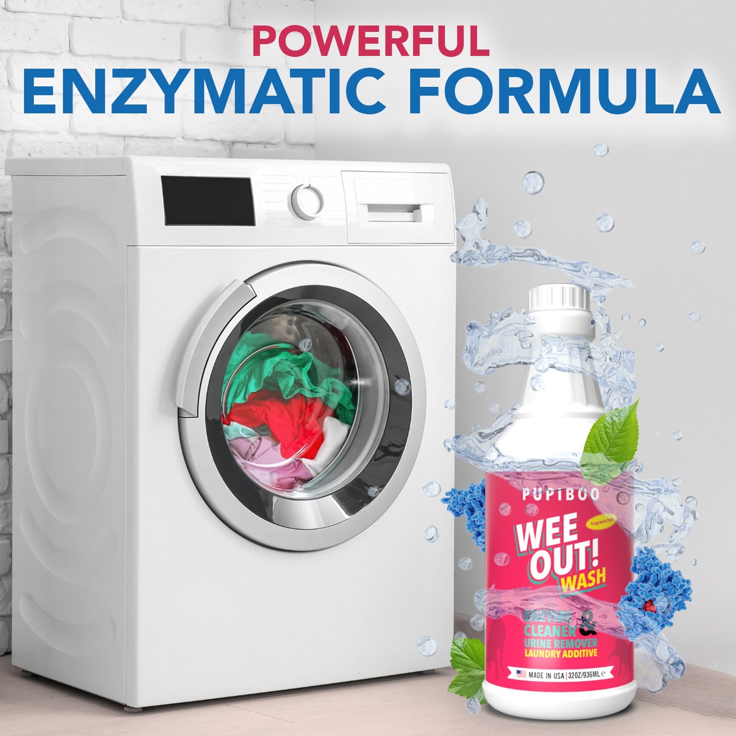 Wee Out Wash (Laundry Additive): A powerful enzymatic formula designed to eliminate stubborn urine odors from fabrics, leaving pads and laundry fresh and clean.